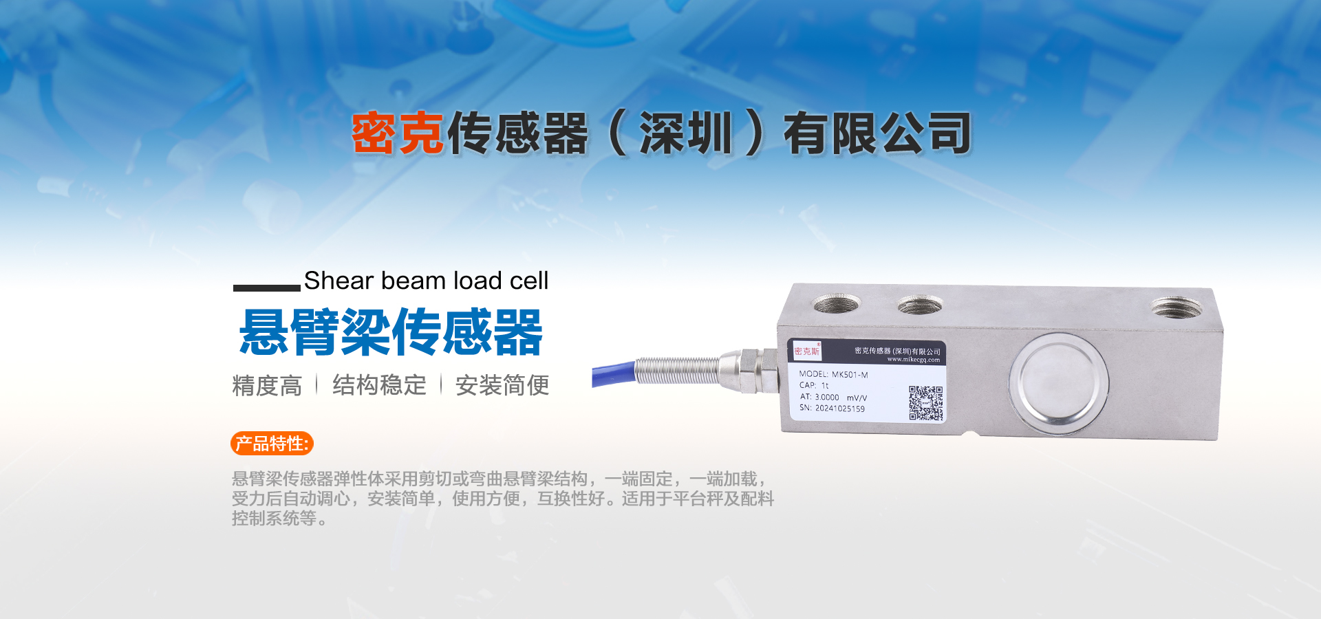 密克傳感器(深圳)有限公司主要生產的產品有測力傳感器、稱重傳感器、拉力傳感器、壓力傳感器、扭矩傳感器,多維力傳感器,電子引伸計等各類力學和稱重傳感器、及其配套儀器儀表和模塊附件的工廠。